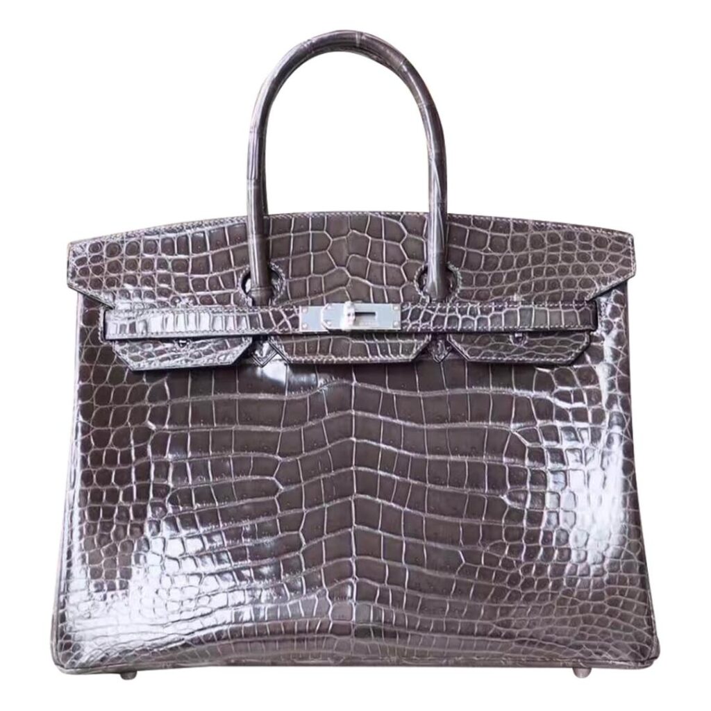 This is a Kelly 28 bag, in graphite crocodile with gold hardware and has tonal stitching, the interior is lined with Graphite chevre. The exotic leather is indescribable. In brand new condition. This bag will last you a life time. It can not get more Luxurious than this bag. Made with 100% Real Crocodile leather, gold plated hardware, fully hand stitched and handmade by a skilled craftsman.